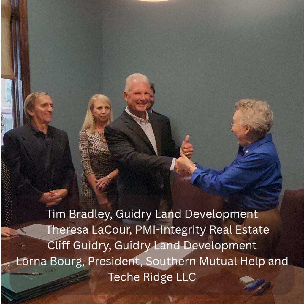 Tim Bradley and Cliff Guidry, partners at Guidry Land Development completed the transition today with Lorna Bourg, the President of Teche Ridge LLC and Southern Mutual Help Association.